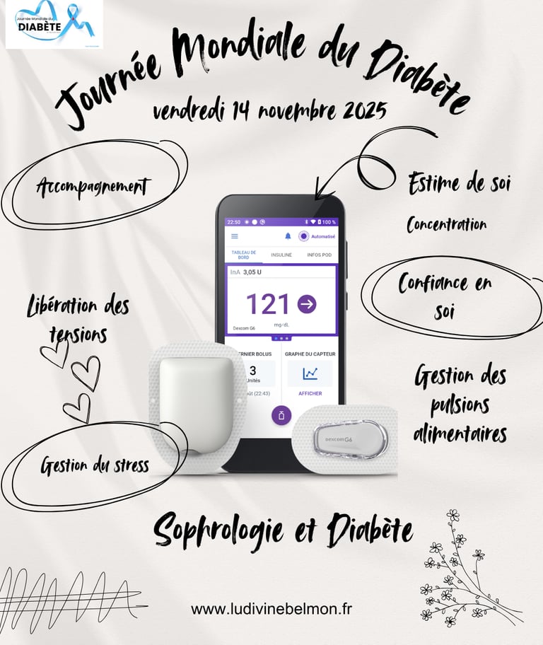La sophrologie est un soutien permettant aux personnes atteintes de diabète, de mieux vivre la maladie au quotidien : accompagnement, estime de soi, confiance en soi, concentration, gestion du stress, gestion des pulsions….